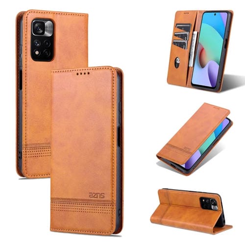 Para Xiaomi Redmi Note 11 Pro / Note 11 Pro + Azns Magnético Calva Textura Horizontal Flip de Cuero Funda Telefónica (Marrón Claro)