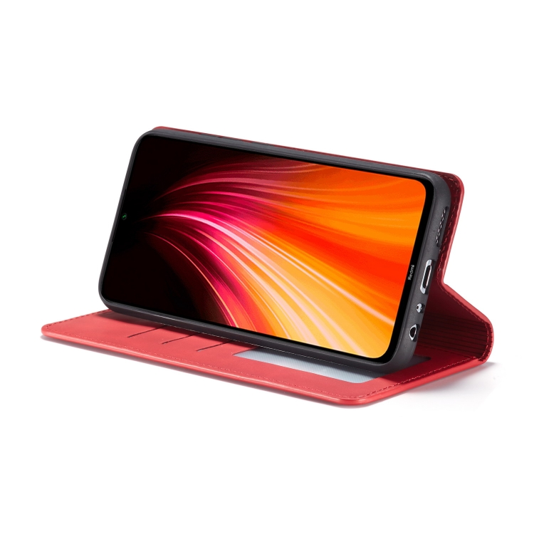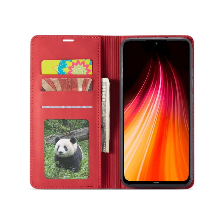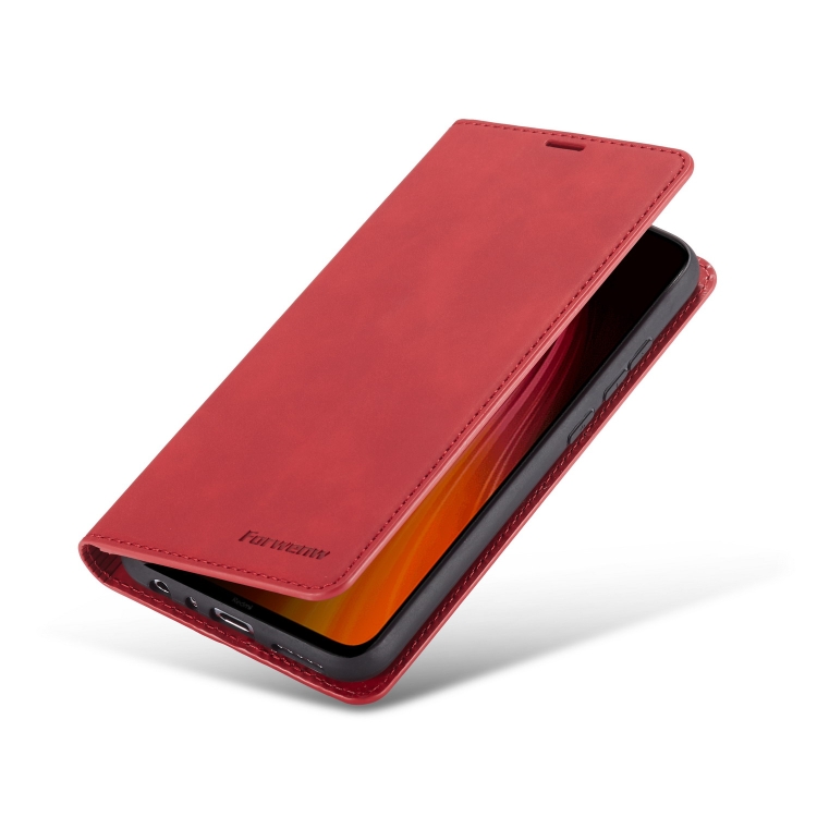 Para Xiaomi Redmi Note 8 FoRWenw Dream Series Oil Edge Fuerte Magnetismo Funda de Cuero con Tapa Horizontal con Soporte y Ranuras para Tarjetas y Billetera y Marco de Fotos (Rojo)