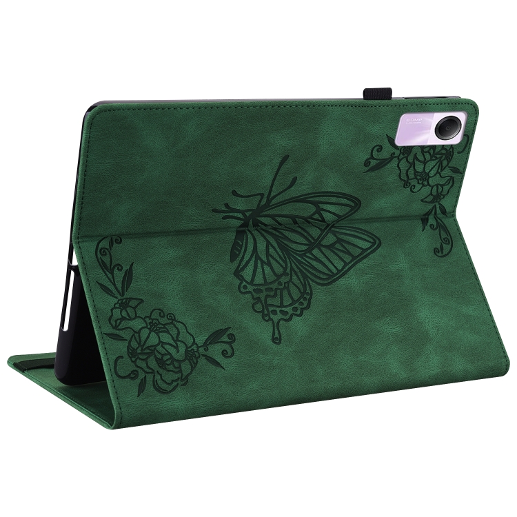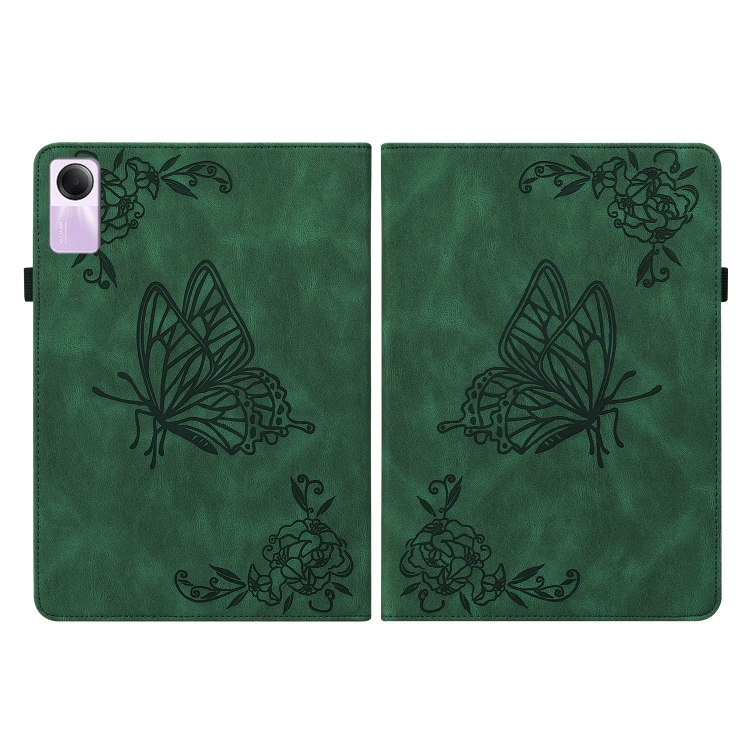 Para Xiaomi Redmi Pad Se Funda para Tableta de Cuero con Relieve de Flor de Mariposa de 11 Pulgadas (Verde)