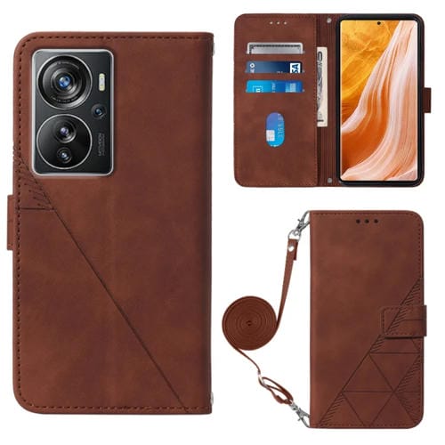 Funda de Cuero con Tapa En Relieve para ZTE Axon 40 Pro Crossbody (Marrón)