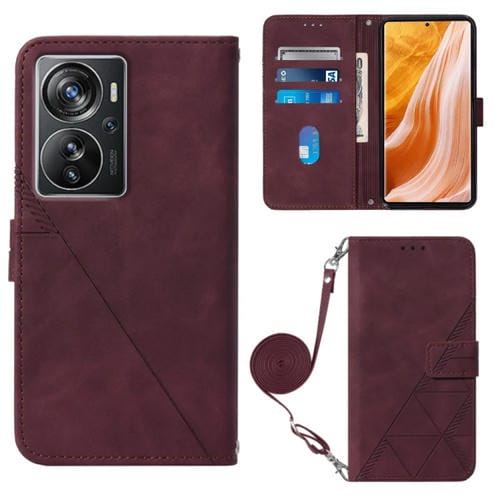 Funda de Cuero para ZTE Axon 40 Pro Crossbody 3D con Tapa En Relieve (Rojo Vino)