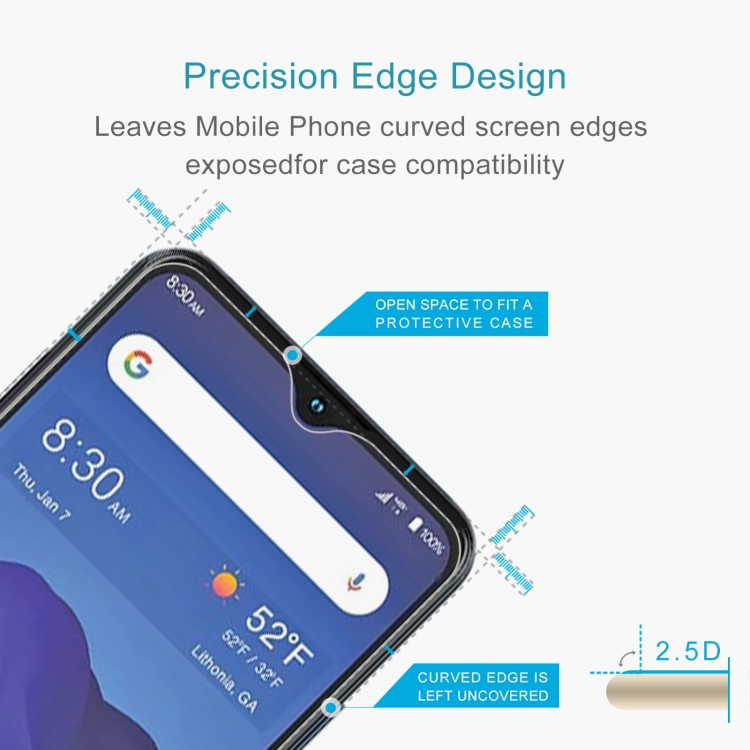 3. Alinee cuidadosamente el vidrio a la pantalla.