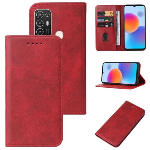 Funda de Cuero para ZTE Blade A52 (2022) con Cierre Magnético (Rojo)