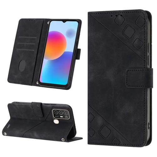Estuche para ZTE Blade A52 de Cuero en Relieve con Tacto de Piel (Negro)