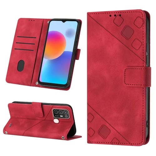 Estuche para ZTE Blade A52 de Cuero En Relieve con Tacto de Piel (Rojo)
