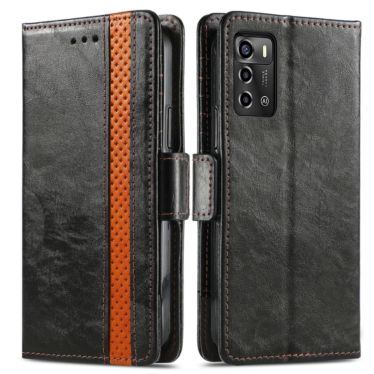 Funda para ZTE Blade A72 4G Caseneo Splicing con Doble Cierre Magnético de Cuero (Negro)