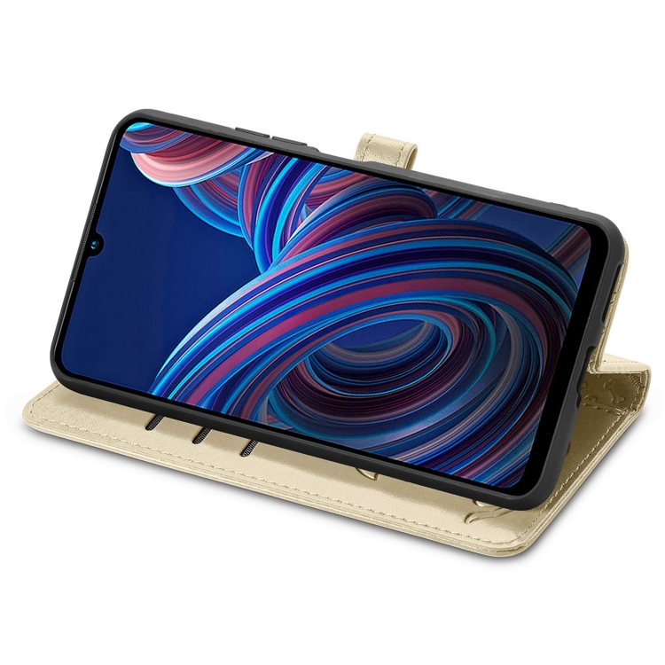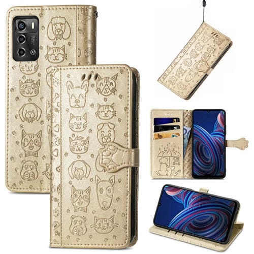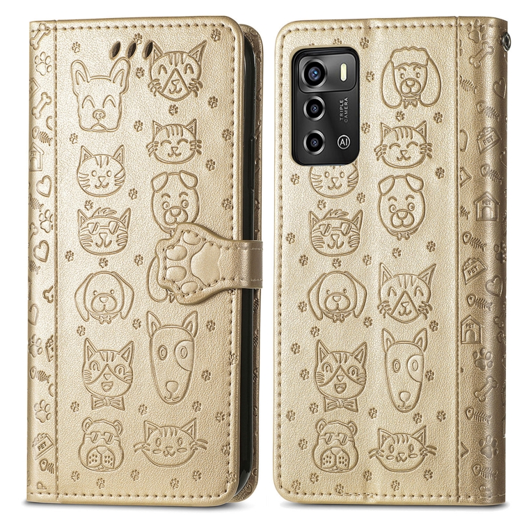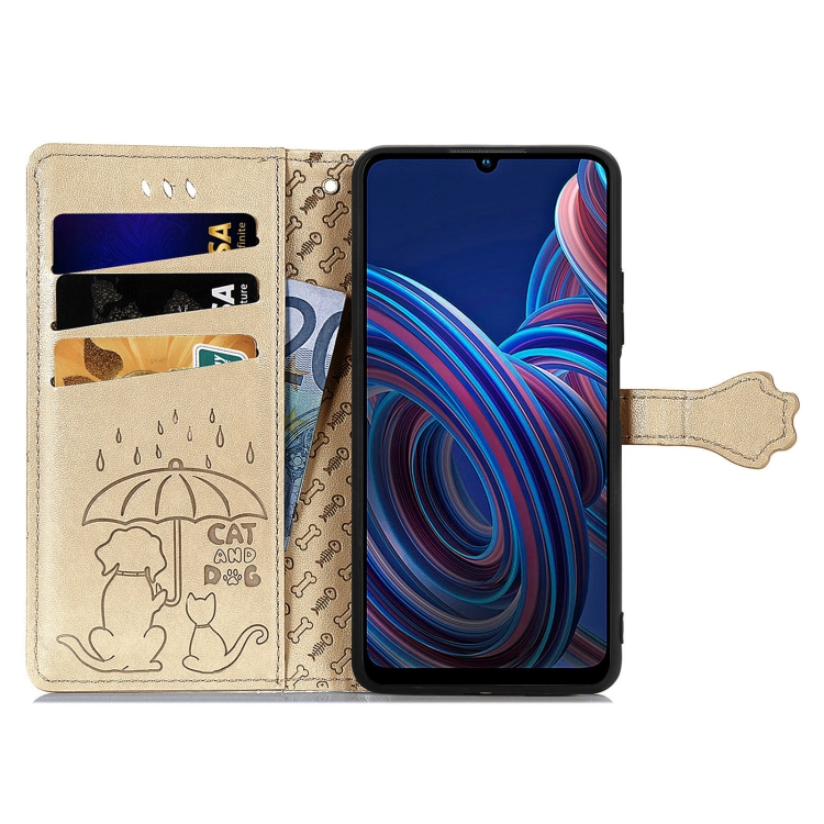 Funda para ZTE Blade A72 4G Cuero en Relieve Cute CAT And Dog (Oro)