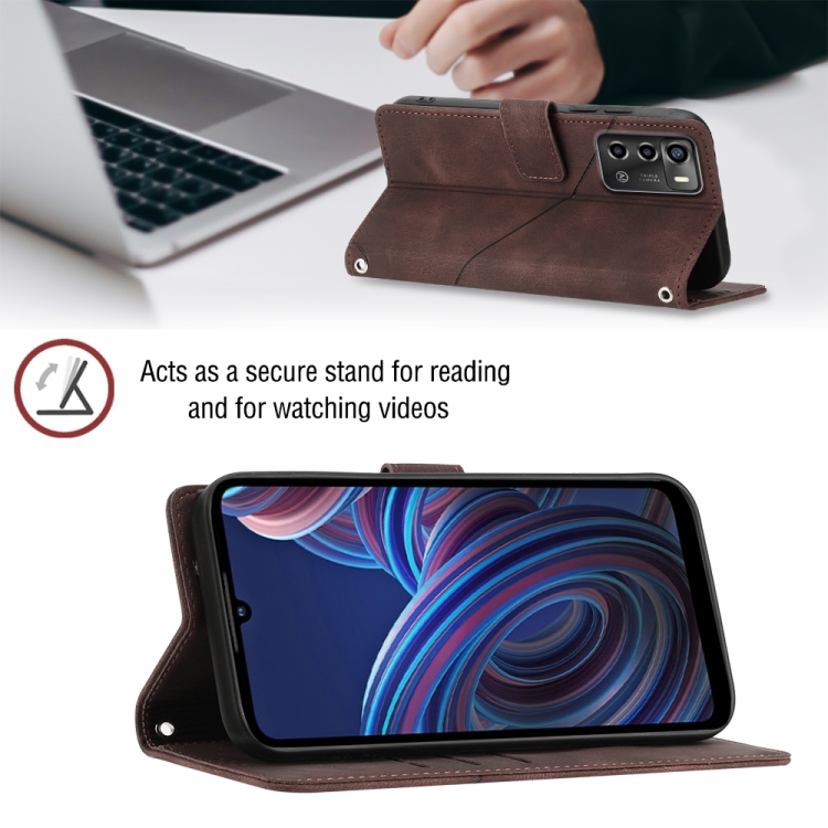 Estuche para ZTE Blade A72 de Cuero en Relieve con Tacto de Piel (Marrón)
