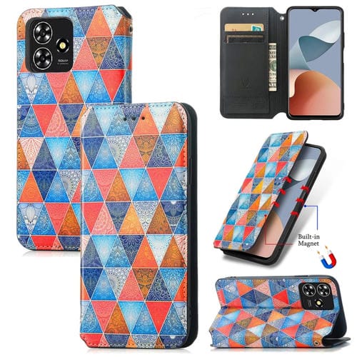 Funda de Cuero Magnética Caseneo para ZTE Blade A73 5G (Rhombus Mandala)
