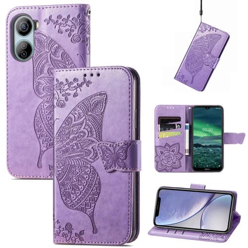 Funda de Cuero para ZTE Libero 5G Iv con Relieve de Flor y Mariposa (Púrpura Claro)