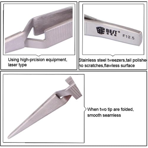 - 1x Pinzas de laboratorio BEST BST-F12.5 rectas autocerradas de acero inoxidable