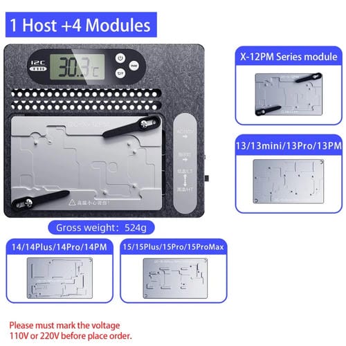 • 1x Estación de desoldar con Placa Base PCB y Pantalla LCD I2C T18 para iPhone X-15 Pro Max (Enchufe USA)