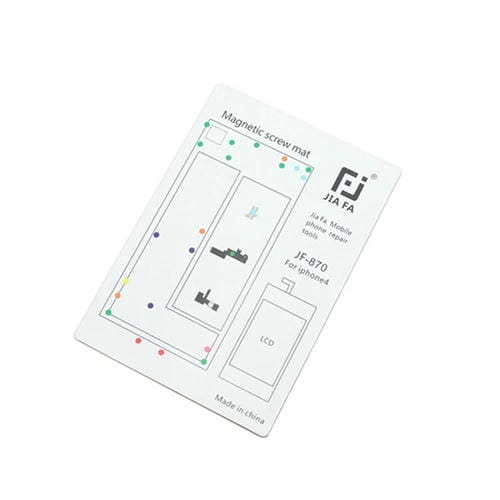 La Alfombrilla de Tornillos Magnéticos Jiafa para iPhone 4 (Negro) es una herramienta especializada diseñada para facilitar la organización y manejo de tornillos durante procesos de reparación y mantenimiento del iPhone 4. Su función principal es evitar la pérdida y mezcla de tornillos mediante un sistema magnético que asegura cada Pieza en su lugar correspondiente. Esta alfombrilla es compatible específicamente con el modelo iPhone 4 de Apple y está fabricada para soportar el uso repetido en entornos técnicos, ayudando a los usuarios que reparan por cuenta propia o profesionales a mantener un orden claro y eficiente durante el desmontaje y montaje del dispositivo.