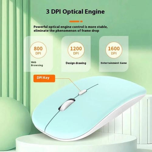 - Conectividad: Bluetooth 3.0, 5.0 y 2.4G / DPI ajustable: 800-1200-1600 / Baterías recargables / Interfaz de carga Tipo C / Distancia de funcionamiento: hasta 10 metros
