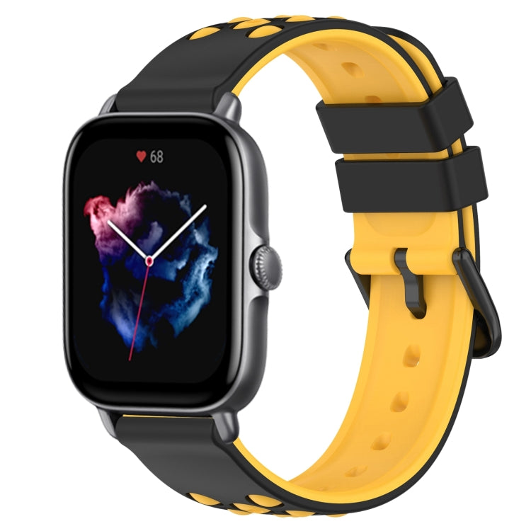 Para Amazfit Gts 2 20mm Correa de Reloj de Silicona Porosa de Dos Colores (Negro + Amarillo)
