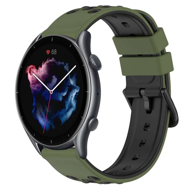 Correa de Reloj Amazfit GTR 3 22mm Silicona Porosa Dos Colores (Verde Militar + Negro)