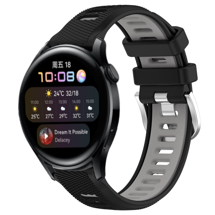 Correa de Silicona para Huawei Watch 3 22mm Deportes con Hebilla de Acero (Negro + Gris)
