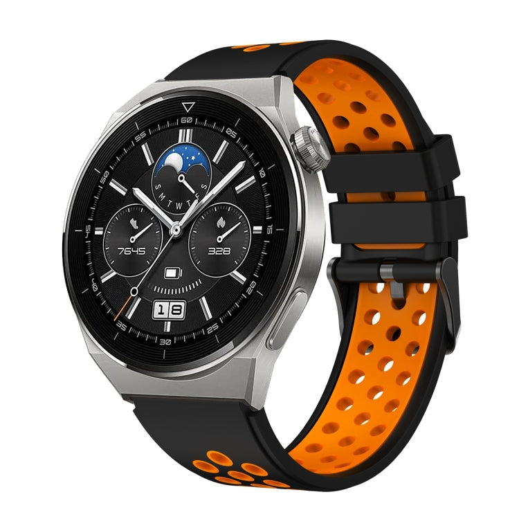 Correa de Silicona para Huawei Watch GT3 Pro 46mm con Orificio Redondo Dos Colores (Negro Naranja)
