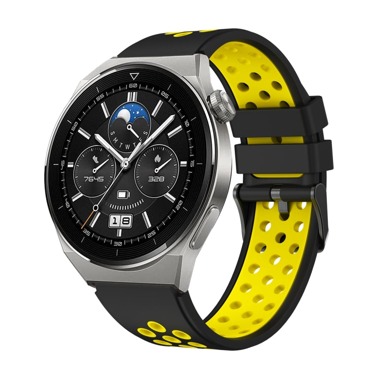 Correa de Silicona para Huawei Watch GT3 Pro 46mm con Orificio Redondo y Dos Colores (Negro Amarillo)