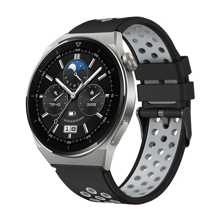 Correa de Silicona para Huawei Watch GT3 Pro 46mm con Orificio Redondo Dos Colores (Negro Gris)