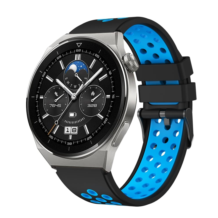 Correa de Silicona para Huawei Watch GT3 Pro 46mm con Orificio Redondo Dos Colores (Azul Cielo Negro)