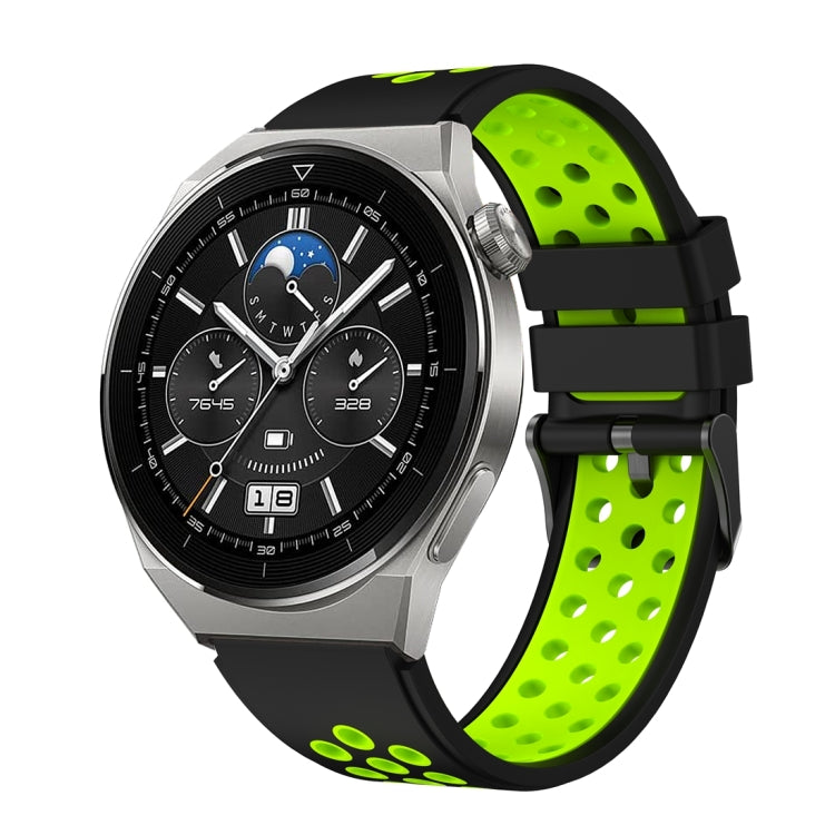 Correa de Silicona para Huawei Watch GT3 Pro 46mm con Orificio Redondo y Dos Colores (Negro Verde)