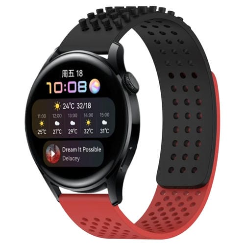 Correa de Silicona para Huawei Watch 3 con Puntos 3D Transpirables y Orificios de 22mm (Negro + Rojo)