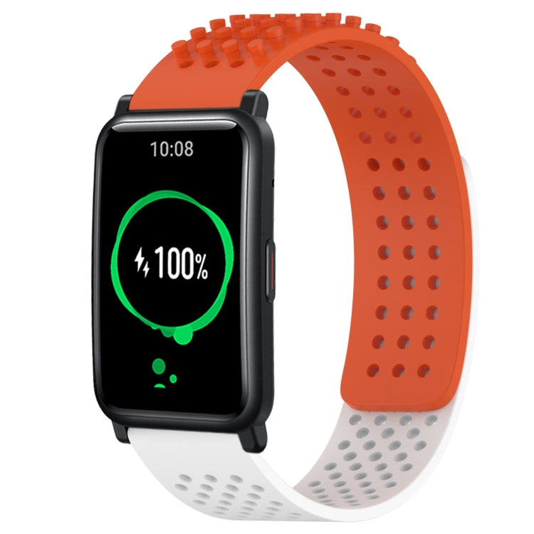 Correa de Silicona para Honor Watch Es con Puntos 3D Transpirables y Orificios 20mm (Naranja + Blanco)