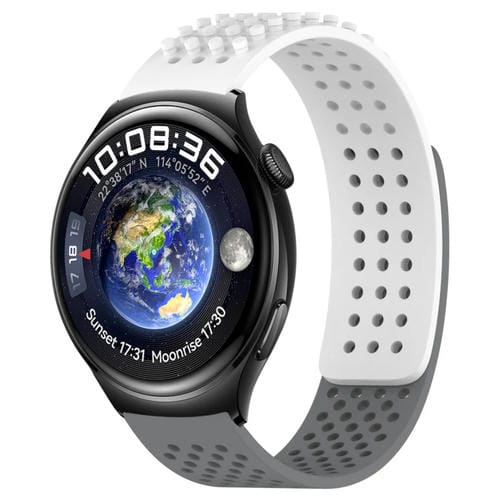 Correa de Silicona para Huawei Watch 4 con Puntos 3D Transpirables y Orificios 22mm (Blanco + Gris)