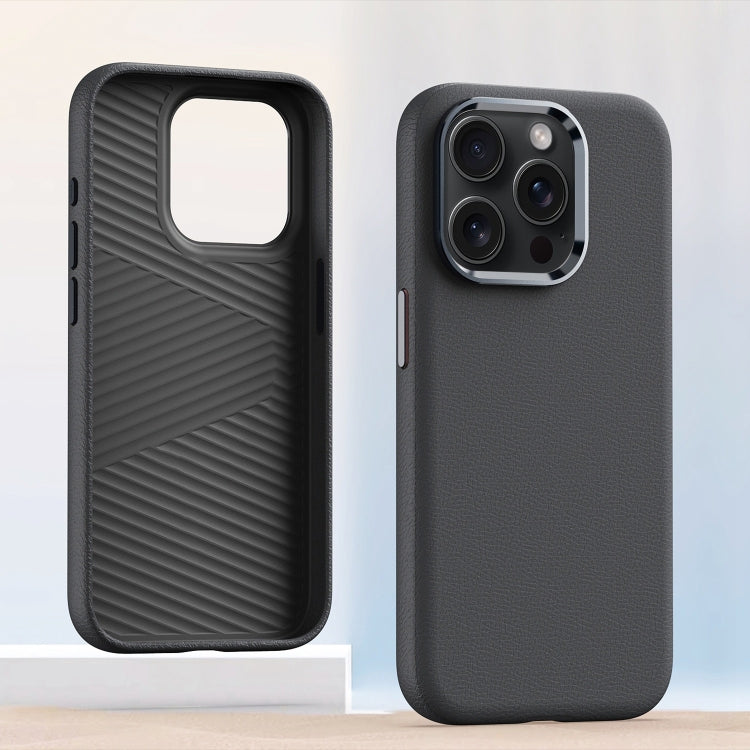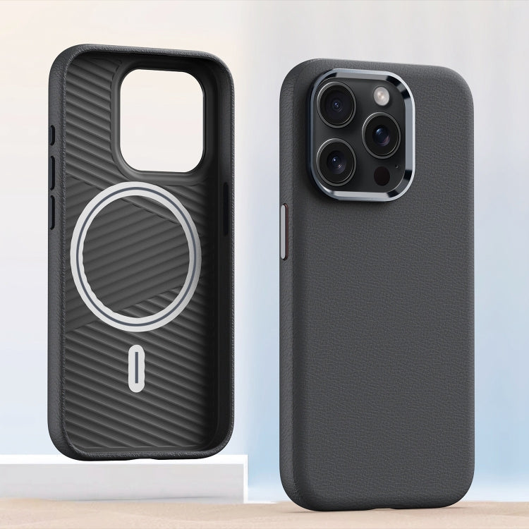 Funda de Teléfono iPhone 13 Pro Marco de Lente Metal Magsafe Cuero Gris