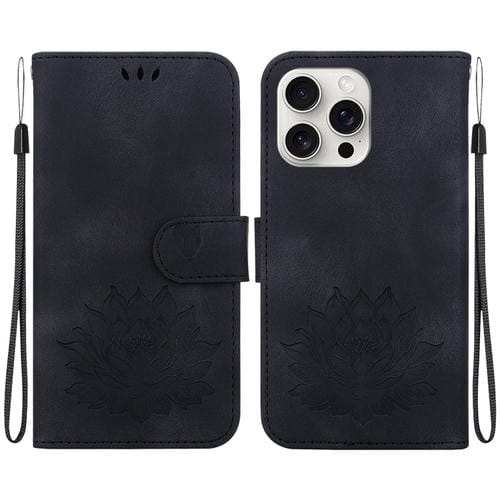 Funda para Teléfono iPhone 16 Pro Max Cuero con Relieve de Loto (Negro)