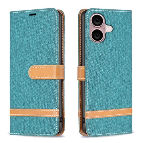 Funda para Teléfono iPhone 16 Cuero Textura Vaquera Bloques de Color (Verde)