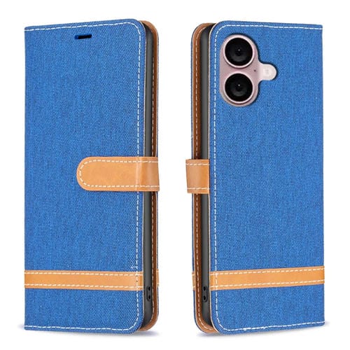 Funda para Teléfono iPhone 16 Cuero Textura Vaquera Bloques de Color (Azul Real)