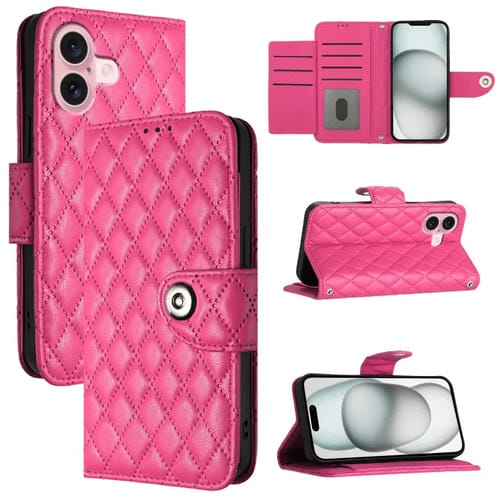 Funda de Teléfono para iPhone 16 Cuero con Tapa Vertical Diamond Lattice (Rosa)