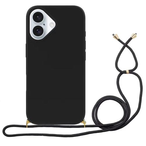 Funda para iPhone 16 Material de Paja de Trigo TPU con Cordón (Negro)