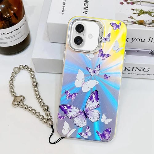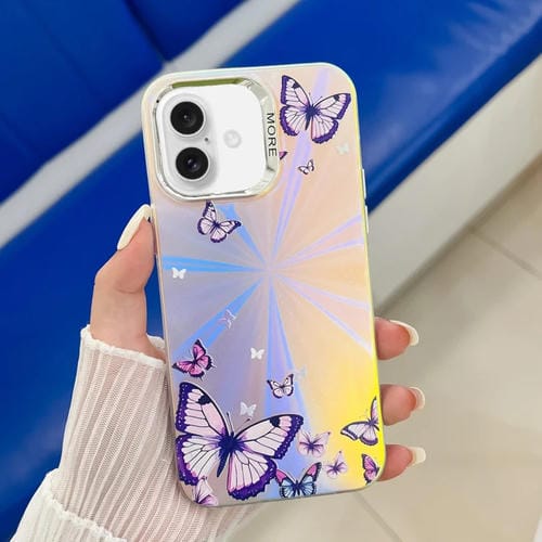 Funda para Teléfono iPhone 16 con Mariposa Láser Galvanizada (Mariposas Moradas)