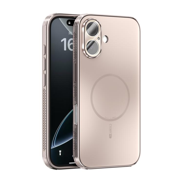 Funda ABEEL MagSafe esmerilada con disipación de calor y película para lente para iPhone 16 (oro rosa)
