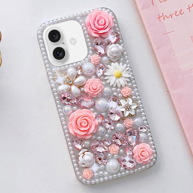 Funda para Teléfono iPhone 16 Diseño Diamante Engastado a Mano (Rosa)
