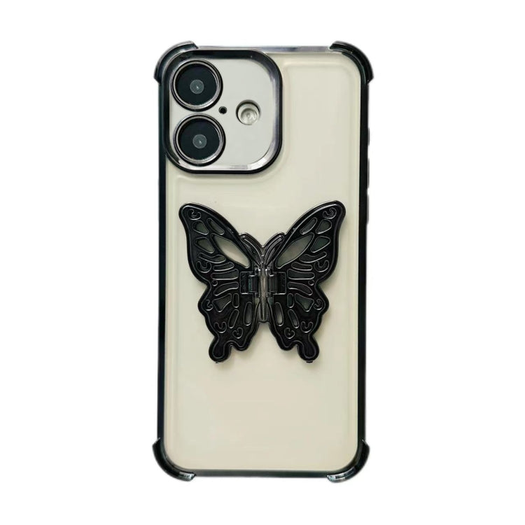 Funda TPU con Soporte Mariposa 3D Galvanizada para iPhone 16 (Negra)