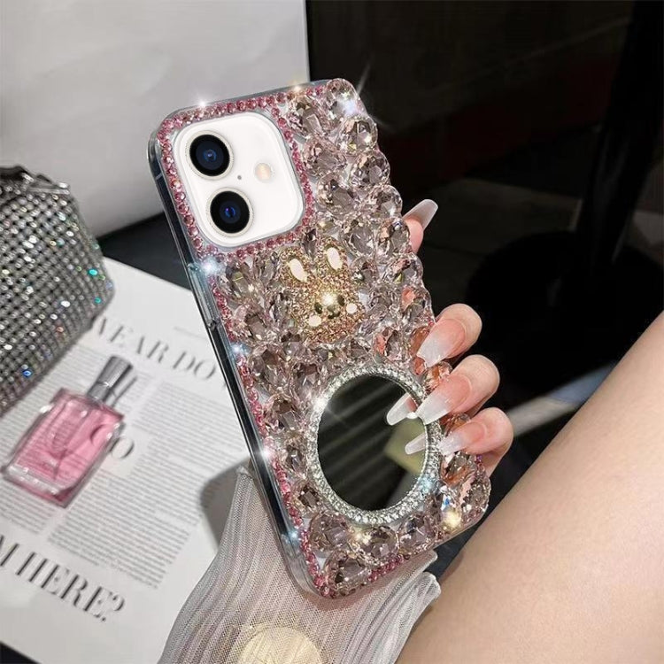 Estuche para Teléfono PC Hecho a Mano Forma de Conejito con Espejo Diamante para iPhone 16 (Colorido)