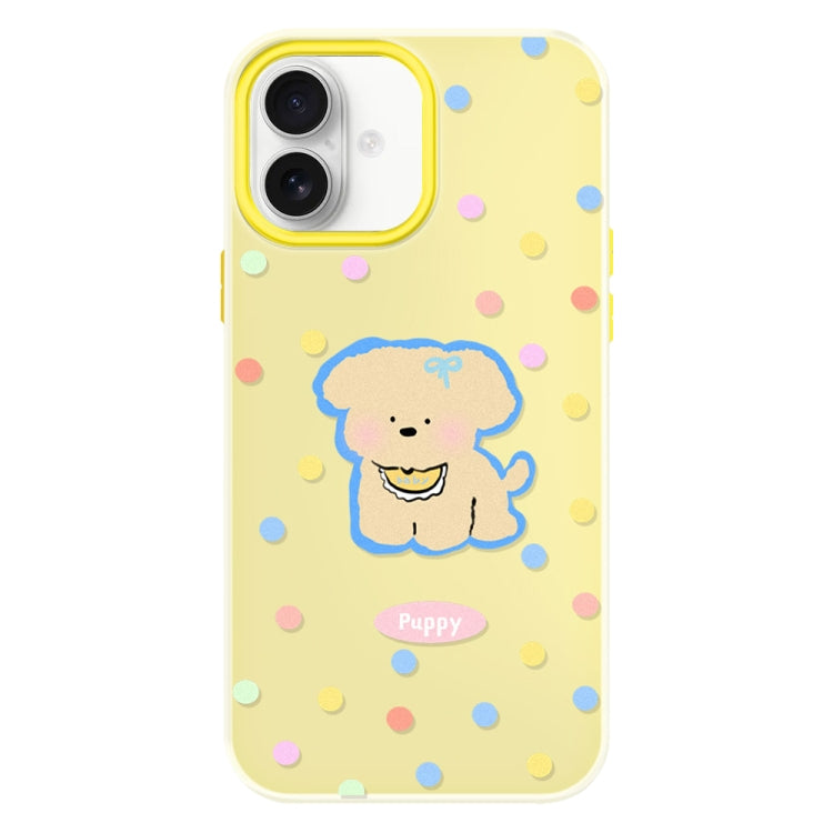 Funda híbrida TPU y PC iPhone 16 Tacto Sedoso (Cachorro Marrón y Blanco)