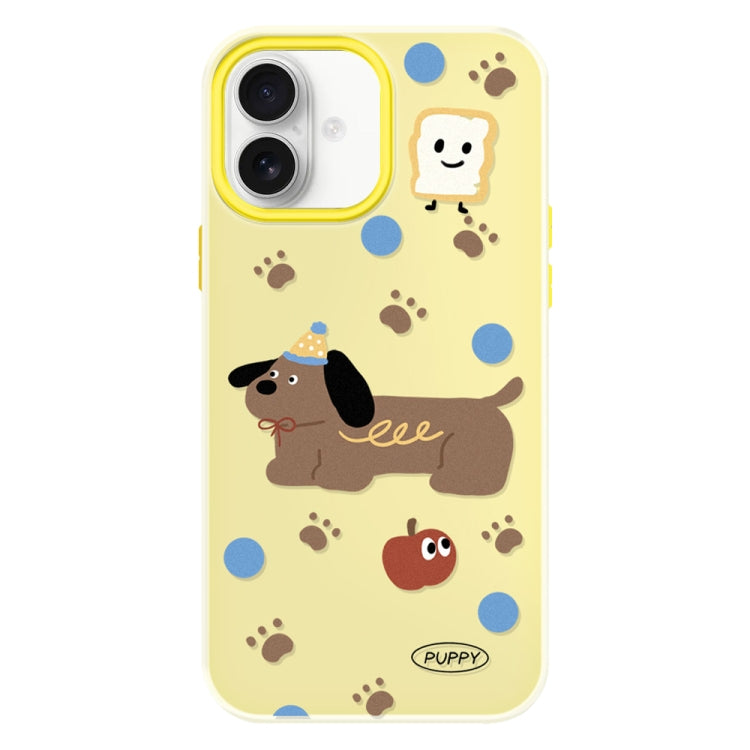 Funda híbrida TPU y Policarbonato iPhone 16 Plus Tacto Sedoso (Marrón Cachorro Amarillo)