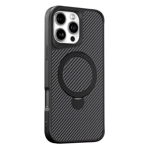 Funda para Teléfono con Soporte Magsafe 360 Textura Fibra de Carbono para iPhone 16 Pro (Negra)