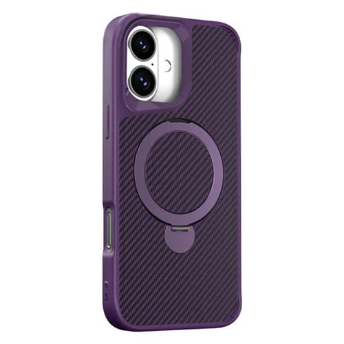 Funda para Teléfono con Soporte Magsafe 360 Fibra de Carbono para iPhone 16 (Morado)
