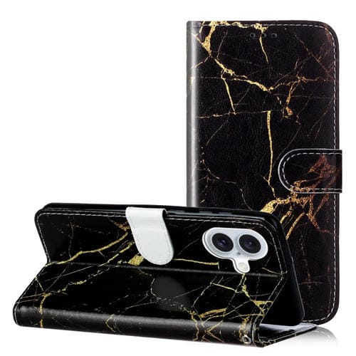 Funda de Cuero para Teléfono iPhone 16 Plus Patrón Mármol Dibujo de Colores (Mármol Negro y Dorado)