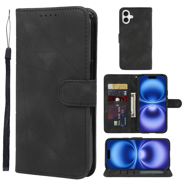 Funda de Piel para iPhone 16 Líneas Geométricas Tacto Sedoso (Negra)