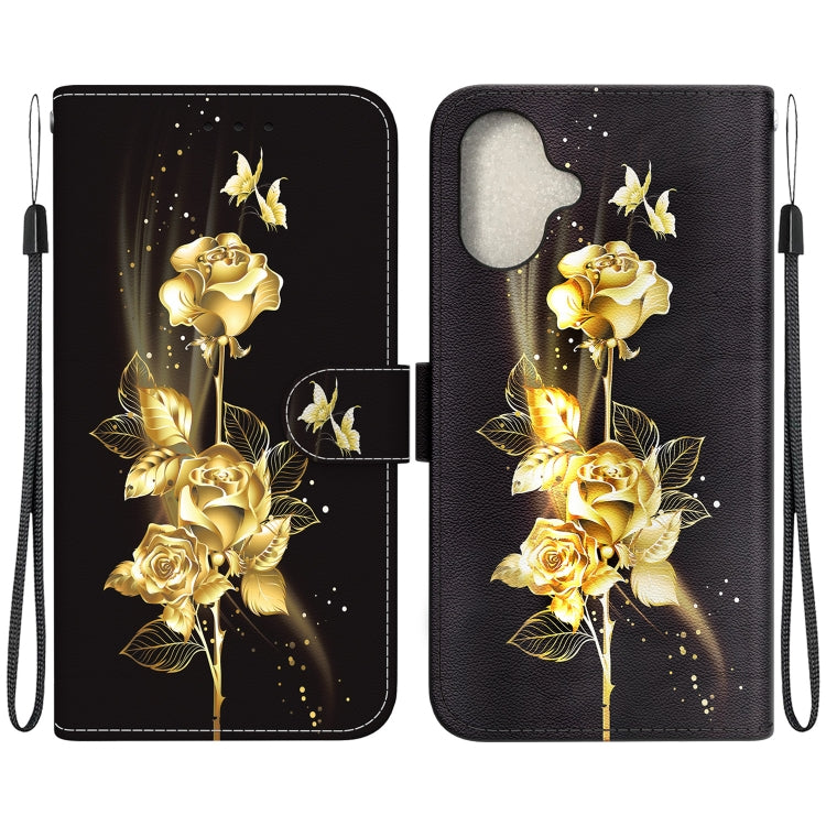 Funda para Teléfono iPhone 16 Plus Cuero Dibujo Coloreado Textura de Cristal (Mariposa Dorada Rosa)