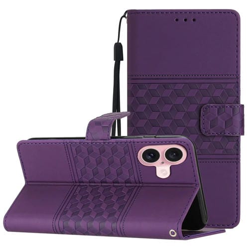 Funda de Teléfono iPhone 16 Cuero Sensación de Piel Relieve de Diamantes (Púrpura)