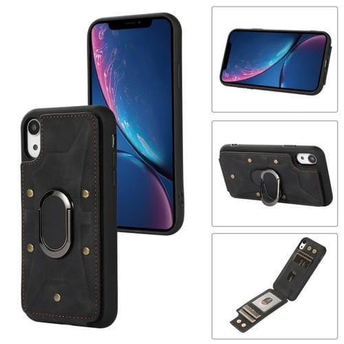 Funda para Teléfono iPhone Xr Armor Ring Wallet Contraportada (Negro)