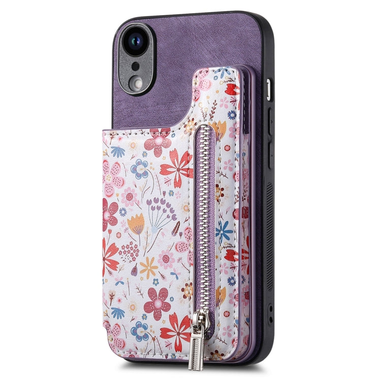 Estuche para Teléfono iPhone Xr con Billetera y Cremallera Pintada Retro (Púrpura)